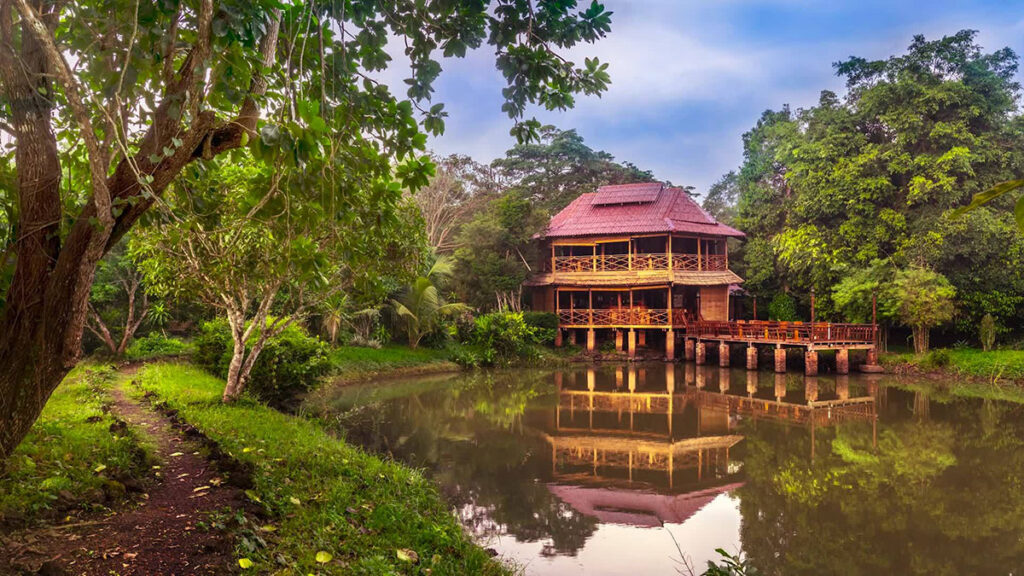Perched above a picturesque pond near the Xe Pian National Protected Area, Kingfisher EcoLodge is the most luxurious stay in the area, where you can watch the sunrise over the wetlands from your own private, stilted bungalow. Hike to the nearby Wat Phu Asa, take a canoe trip on the nearby lake with local fishermen and see if you can spot the crested serpent eagle.
